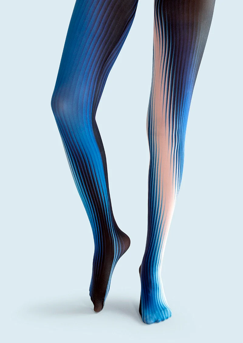 Viken Plan Art Print Tights Personality Pantyhose/Tights [Blue Corrugation]