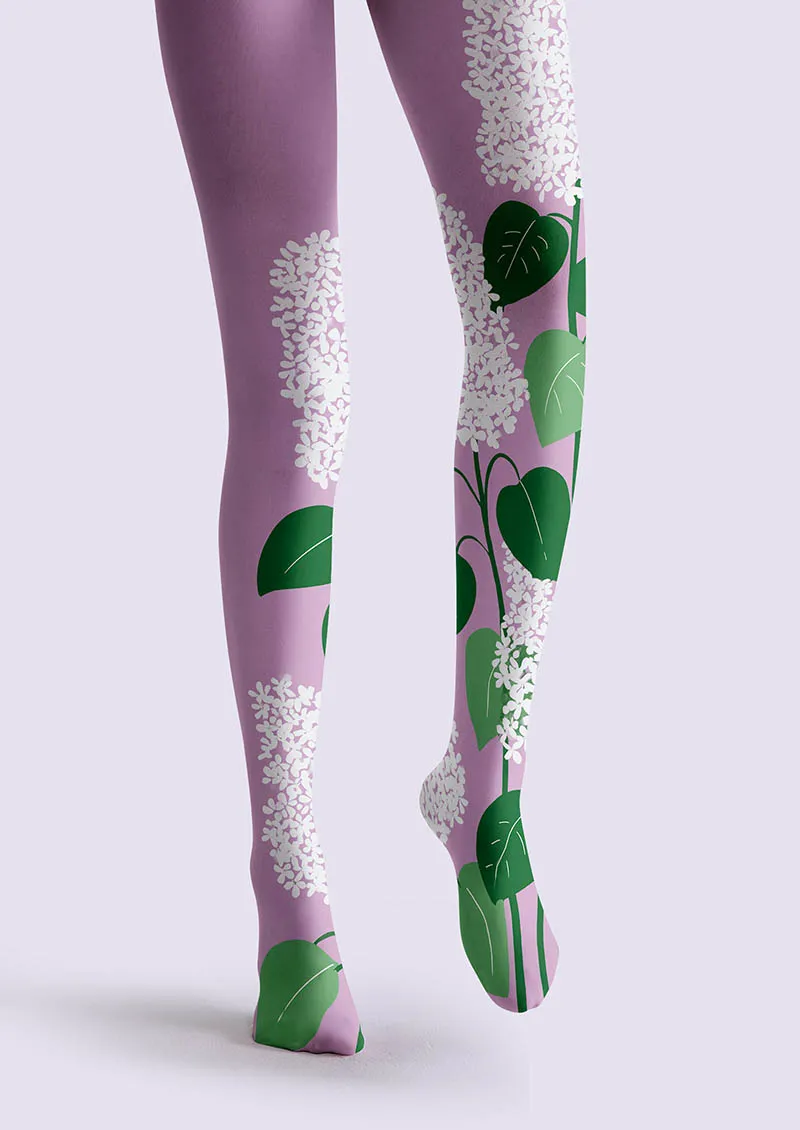 Viken Plan Plant Print Tights Geometric figure Pantyhose/Tights [Purple Hydrangea]