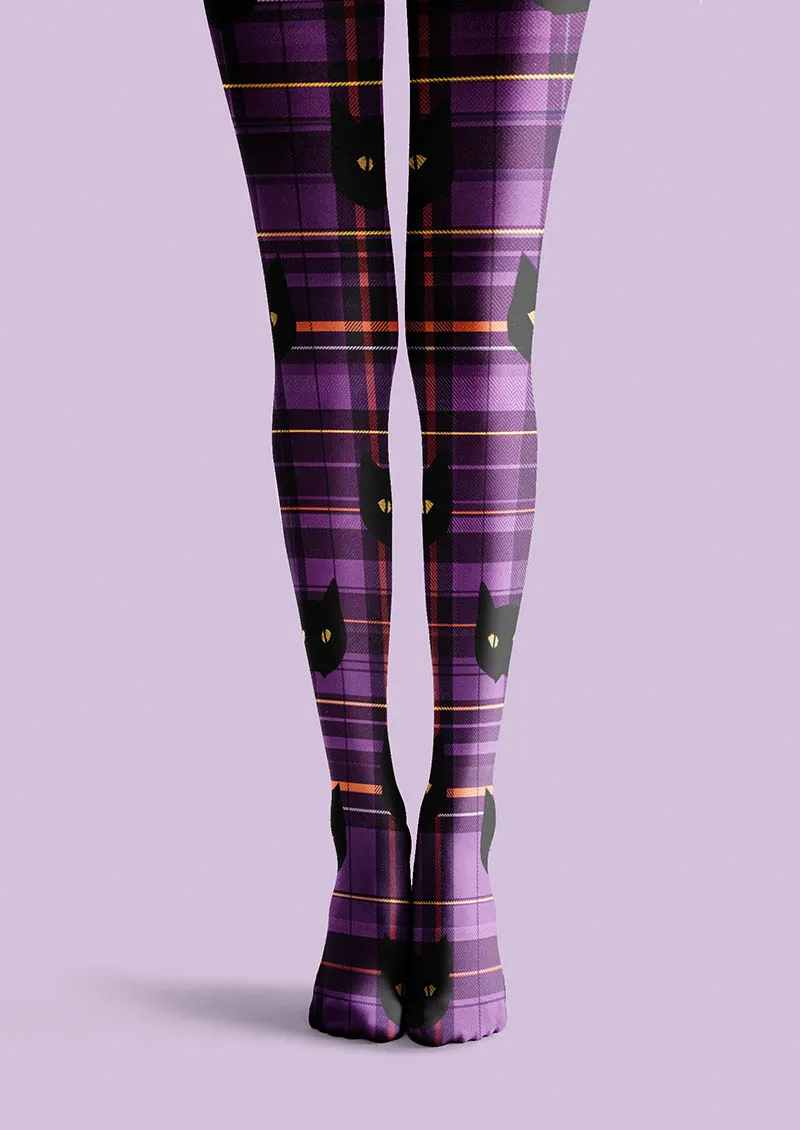 Viken Plan Halloween Fun Art Print Tights Personalized Tights/Tights [Shadow Plaid Cat]