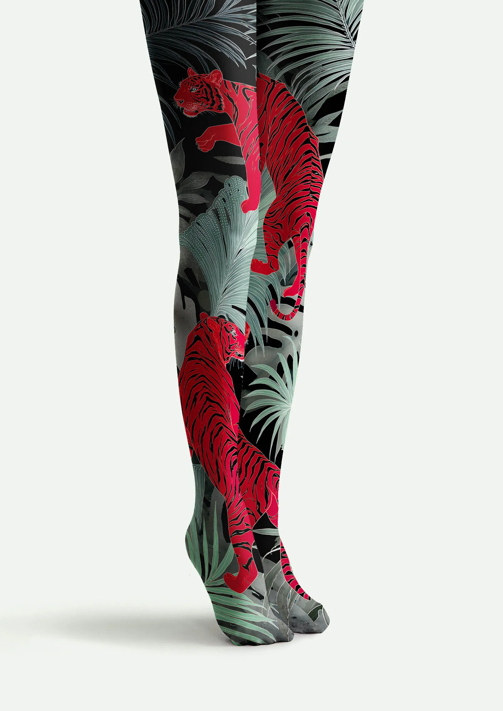 Viken Plan Tiger Totem Patterned Tights Hosiery Pantyhose