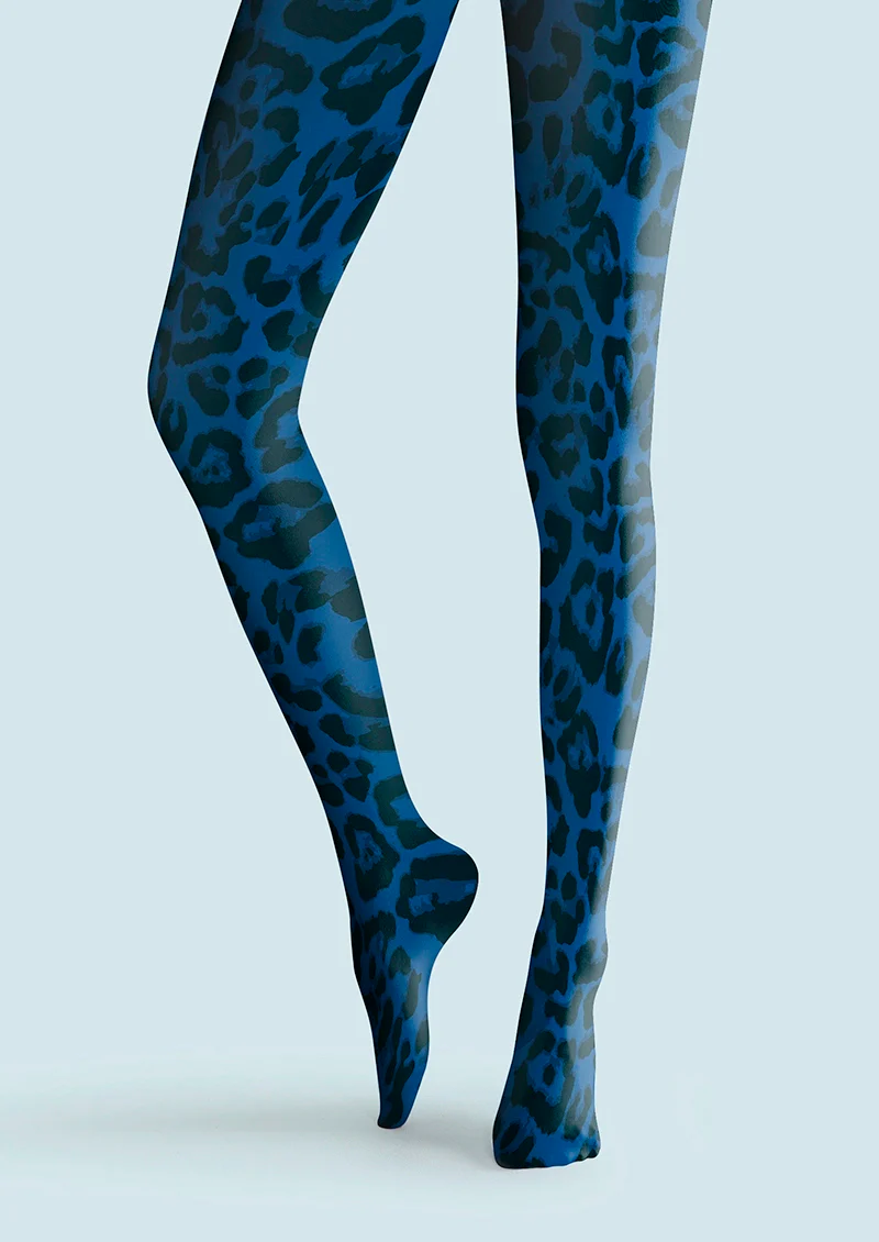 Viken Plan Vibrant Blue Leopard Print Tights Hosiery Pantyhose