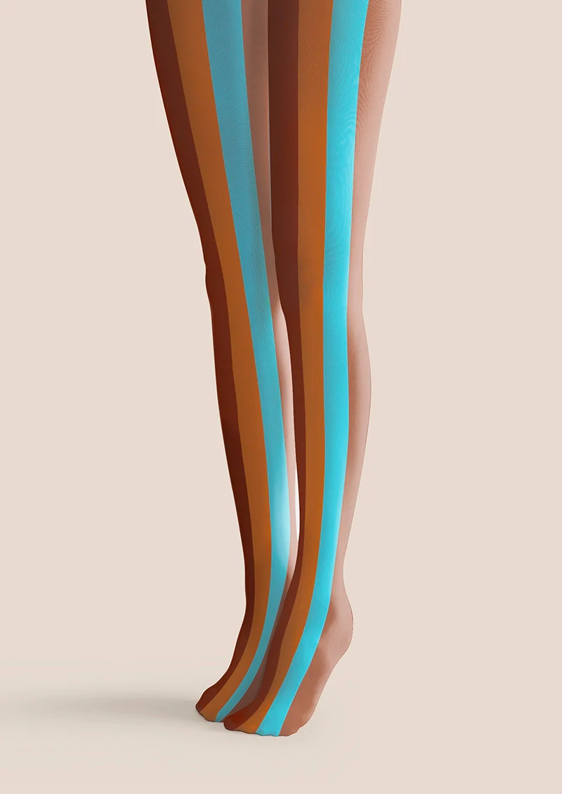 Viken Plan Brown Blue Striped Tights Hosiery Pantyhose
