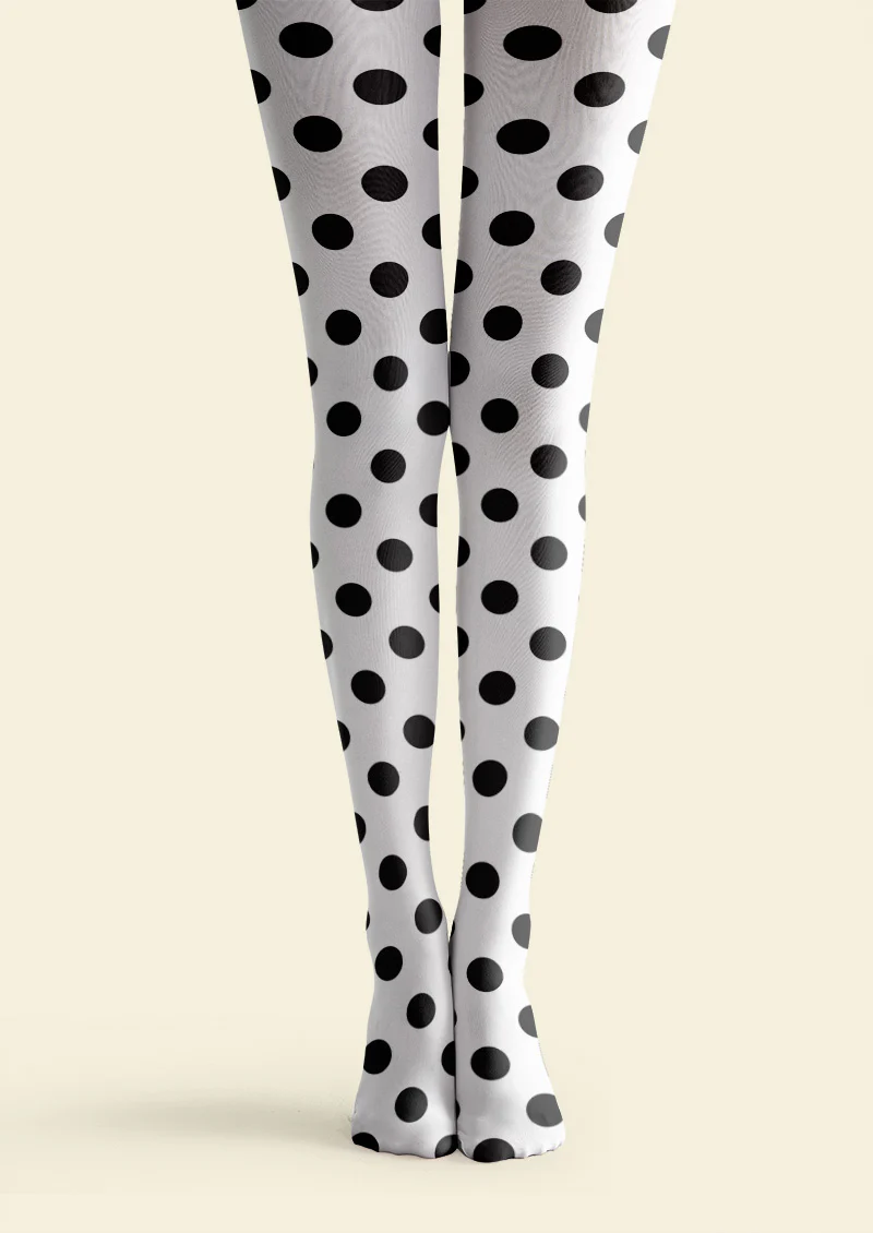 Luna Dots tights bring playful polka dots in black and white, a chic nod to retro charm and effortless style.