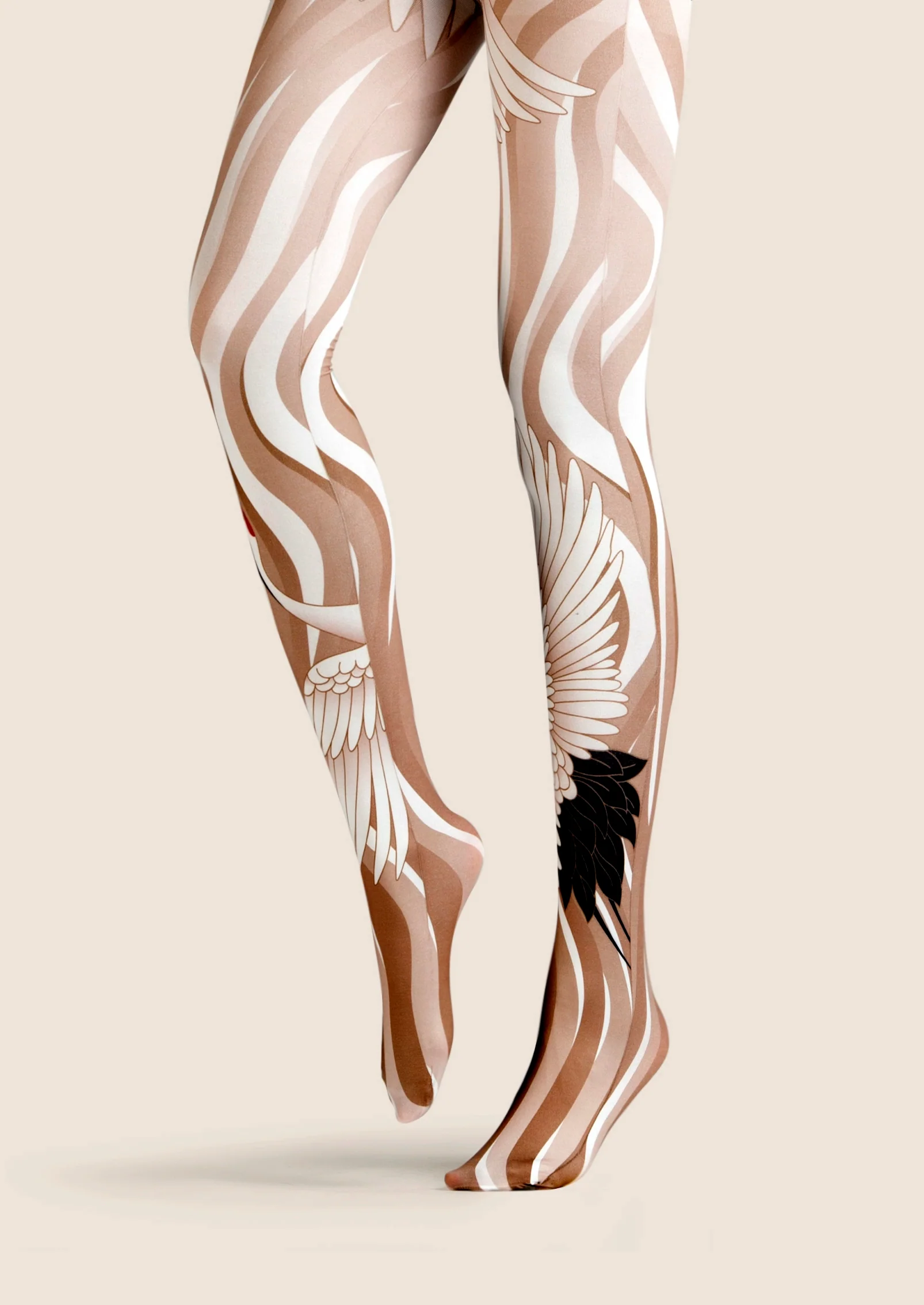 Viken Plan Golden Crane's Wings Unfurling Patterned Tights Hosiery Pantyhose