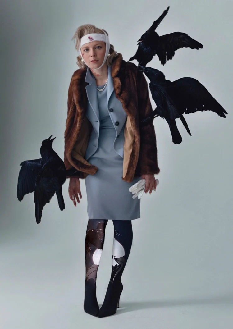 Viken Plan Golden Crane's Wings Unfurling Patterned Tights Hosiery Pantyhose