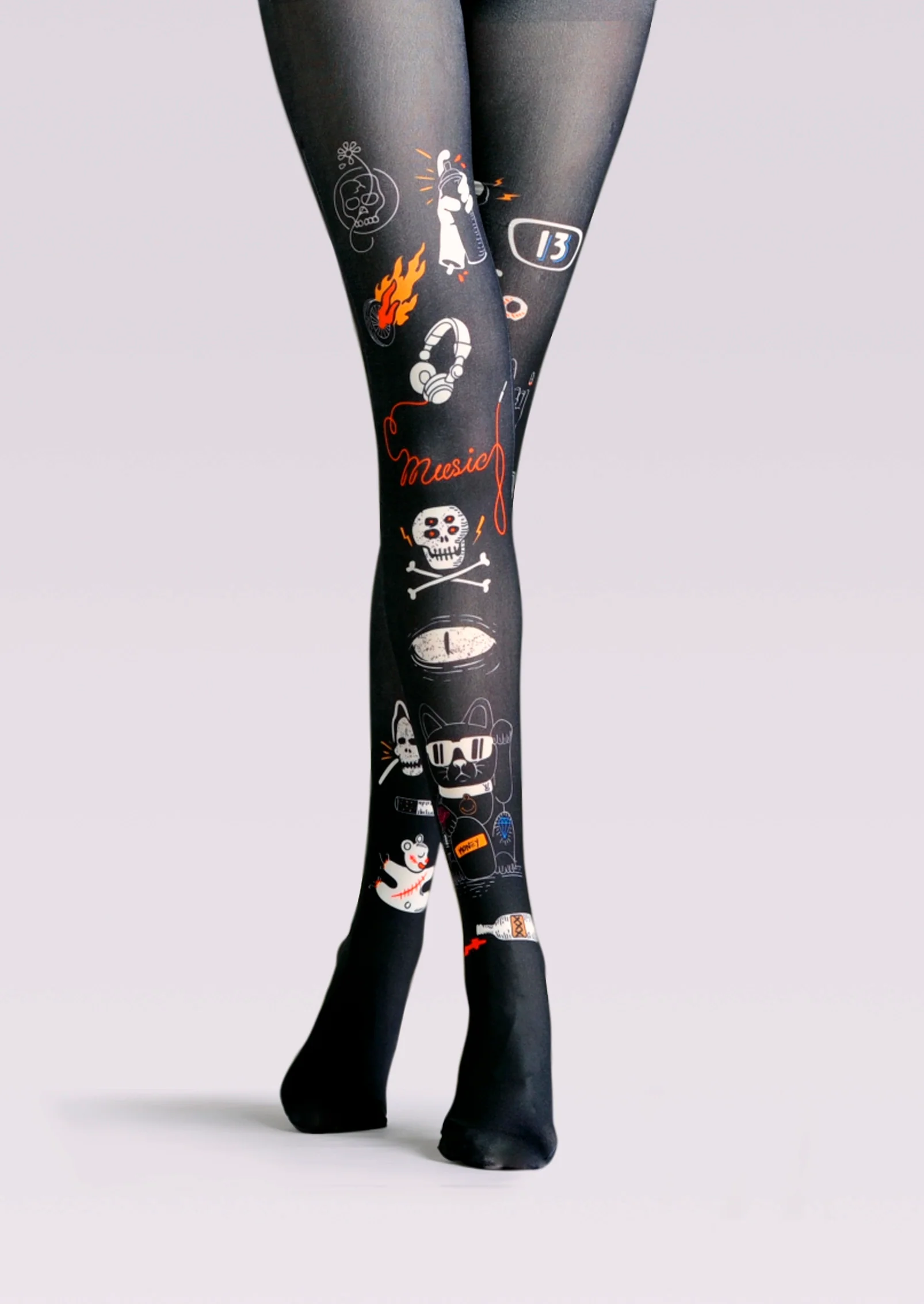 Viken Plan Street art Print Tights Personality Pantyhose/Tights [Necro Cat]