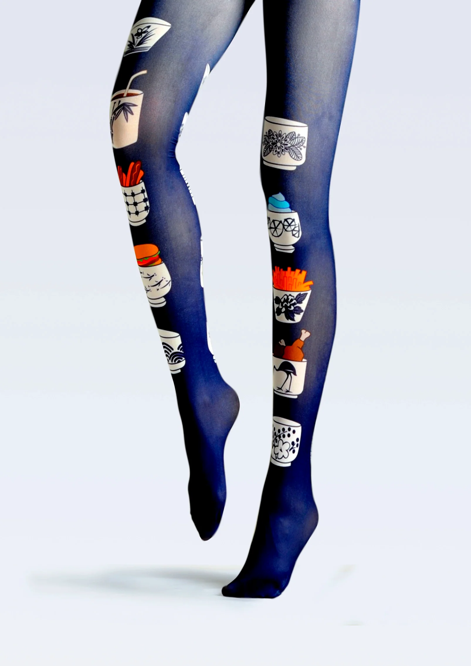 Viken Plan Ethnic art Print Tights Chinaware Pantyhose/Tights [Porcelain Family Bucket]