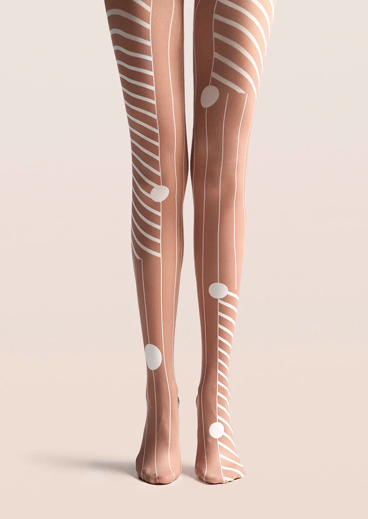 Discover forest-inspired style with wood-colored striped tights by Viken Plan. These chic printed pantyhose blend nature tones with modern fashion.